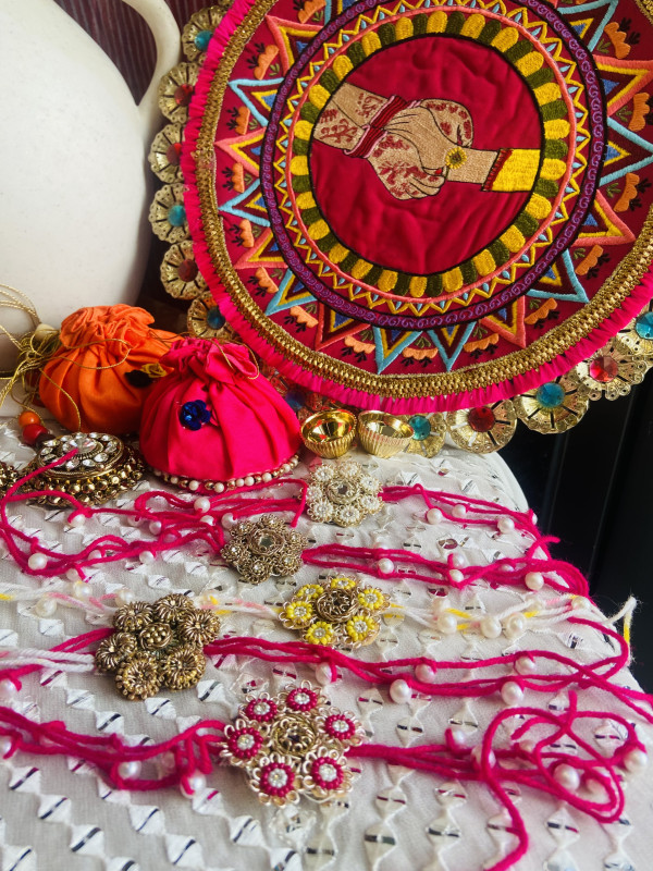 Embroidered customised with the touch of pearls as Rakhi’s and Lumba’s as bracelets for your loved ones.