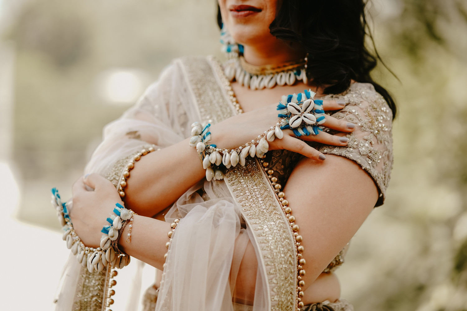 Made with dry flowers, shells and fine pearl chains , this shell jewellery gives you a perfect balance of ethnic and boho look.