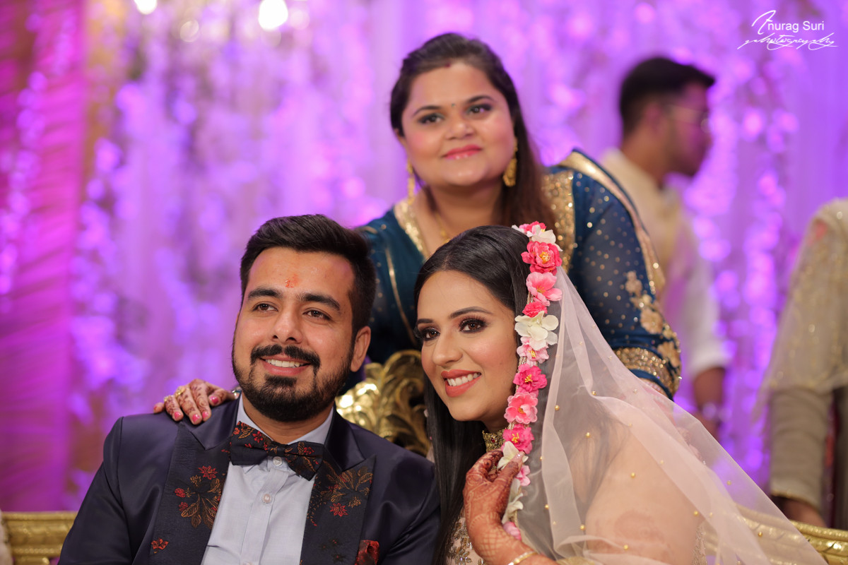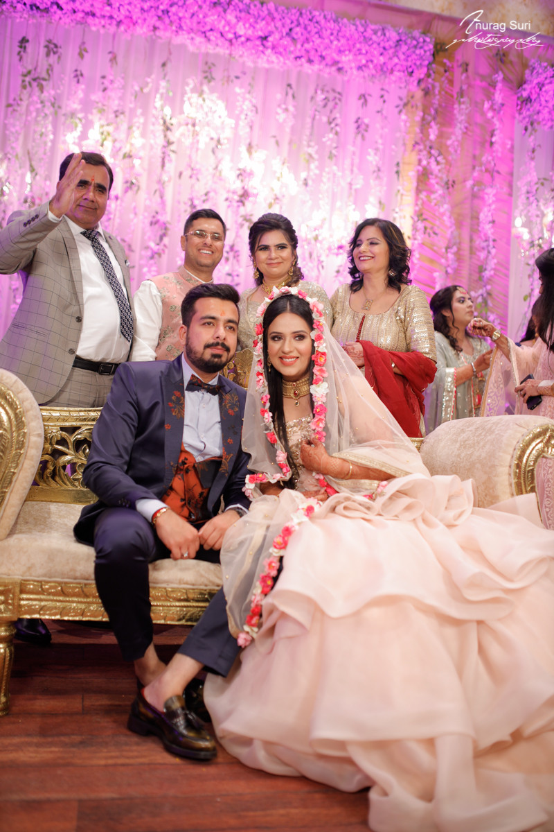 Bride is wearing floral dupatta with the touch of flowers and pearls.