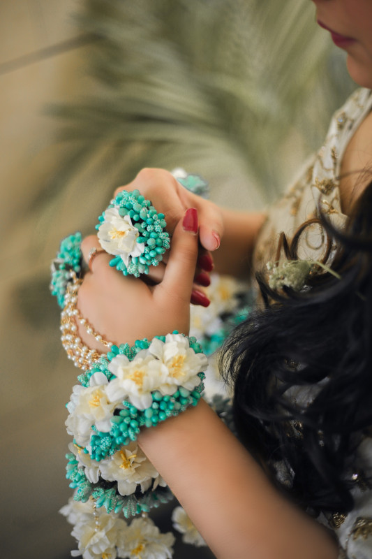 These handcrafted kaleeras are made up of flowers with traditional golden kaleeras for one of the most scintillating and gorgeous look of the bride.