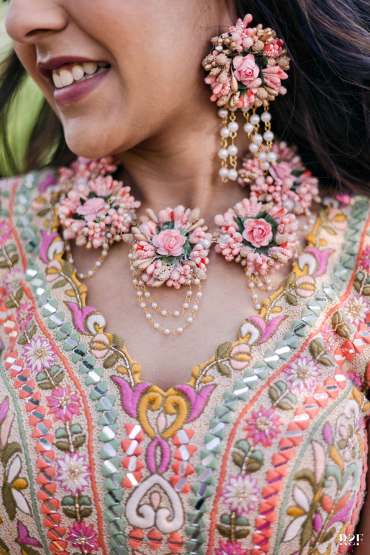 This jewellery includes CHOKER , Hathphools with hangings , mangtikka & earrings.