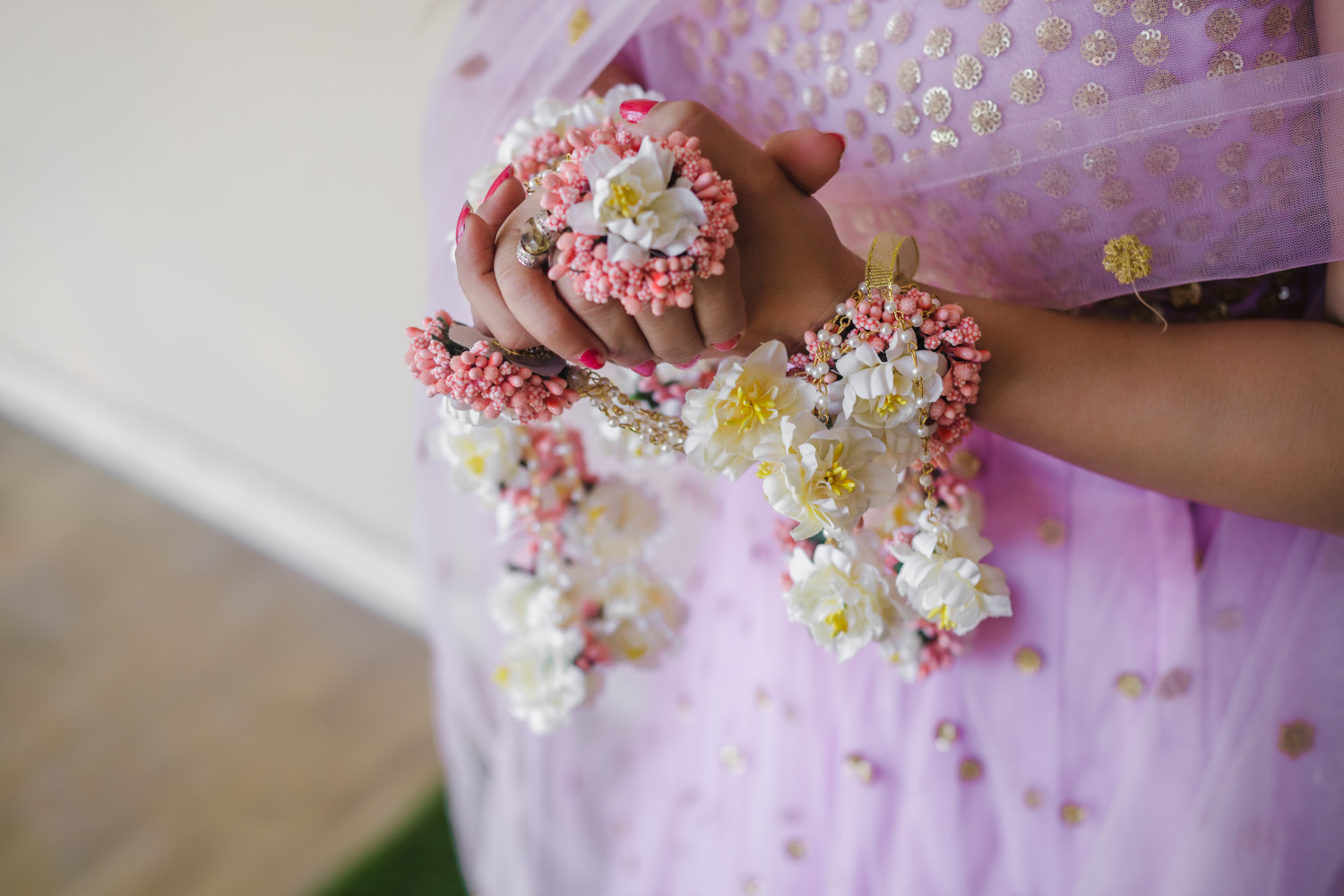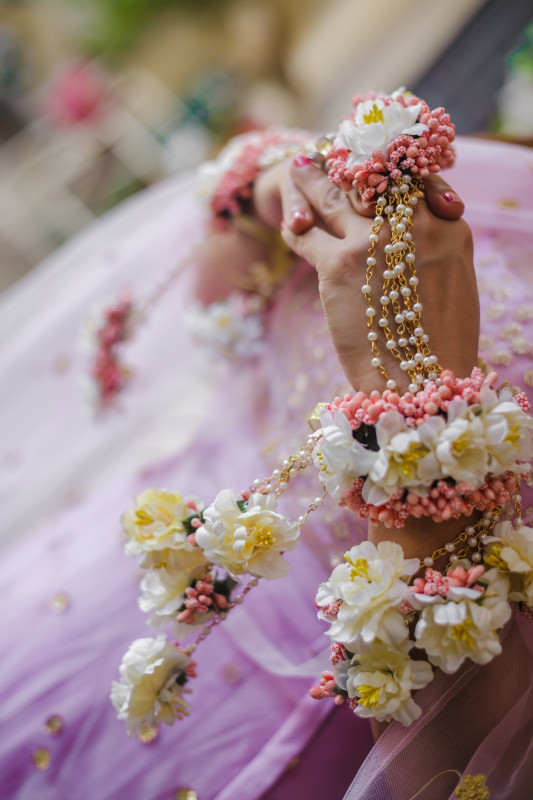 These handcrafted kaleeras are made up of flowers with traditional golden kaleeras for one of the most scintillating and gorgeous look of the bride.