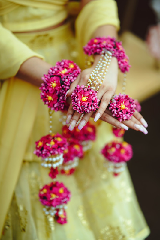 These handcrafted kaleeras are made up of flowers with traditional golden kaleeras for one of the most scintillating and gorgeous look of the bride.