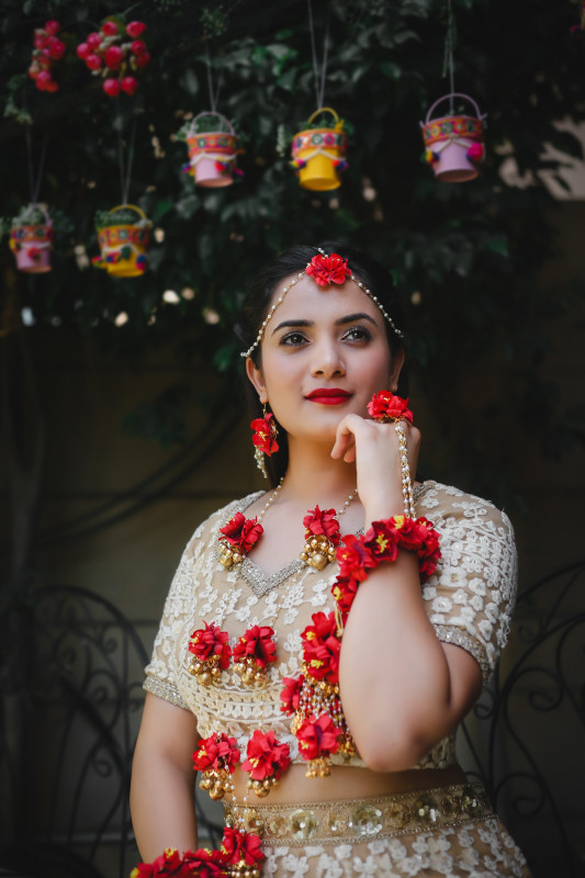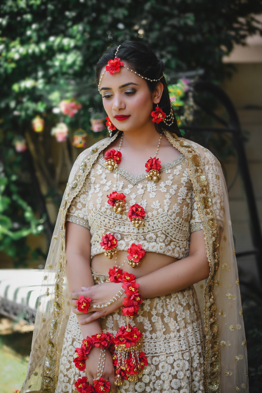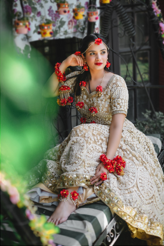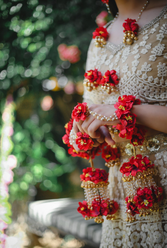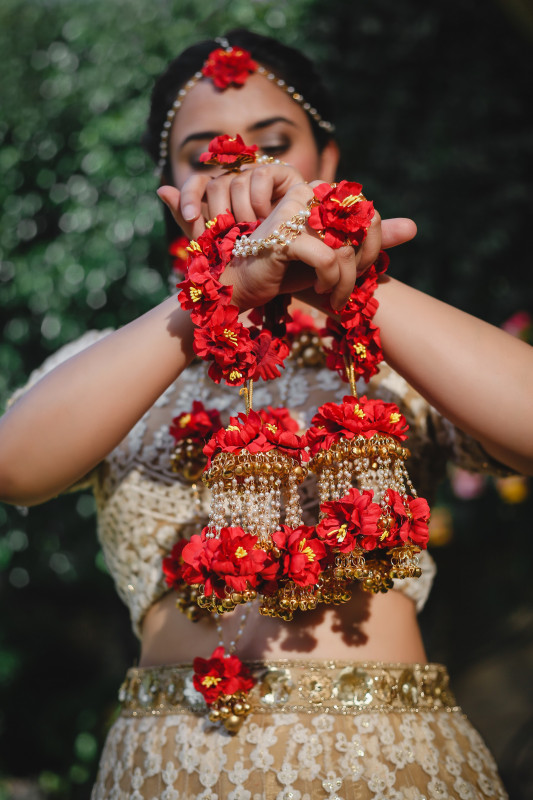 These handcrafted kaleeras are made up of flowers with traditional golden kaleeras for one of the most scintillating and gorgeous look of the bride.