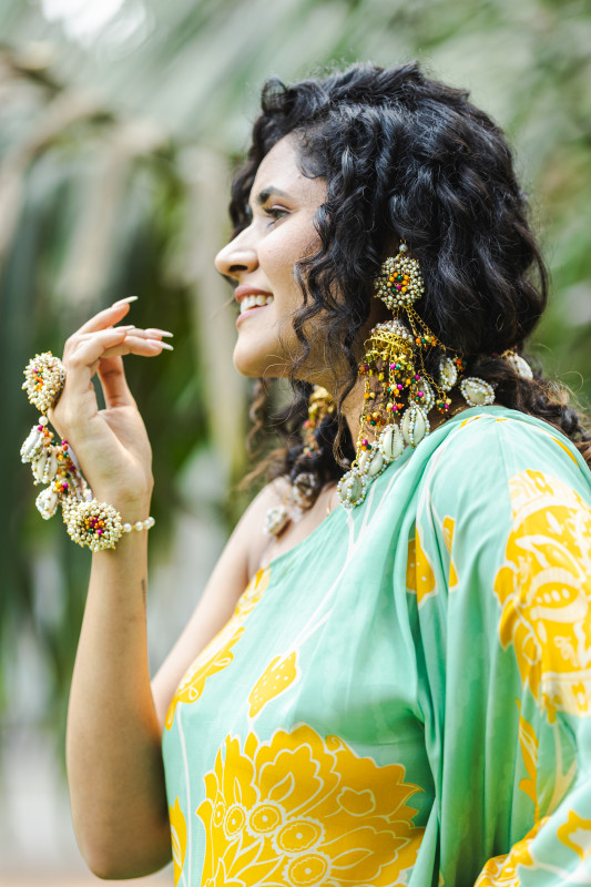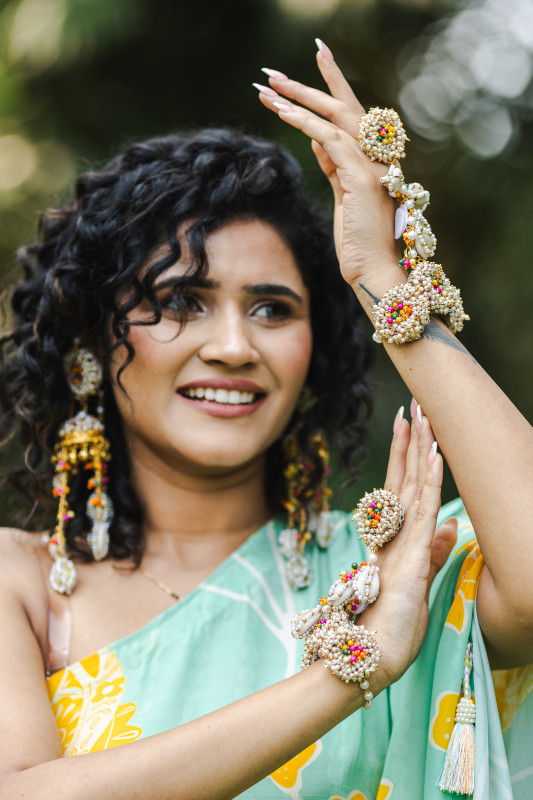 With florals, pearls, and sea shells, this pastel-perfect collection is designed to make your haldi, mehendi, and wedding moments unforgettable✨