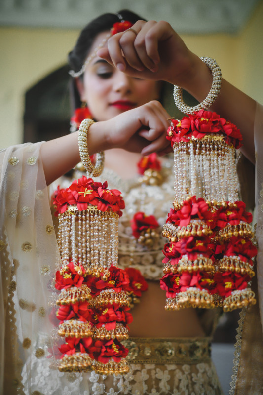 These handcrafted kaleeras are made up of flowers with traditional golden kaleeras for one of the most scintillating and gorgeous look of the bride.