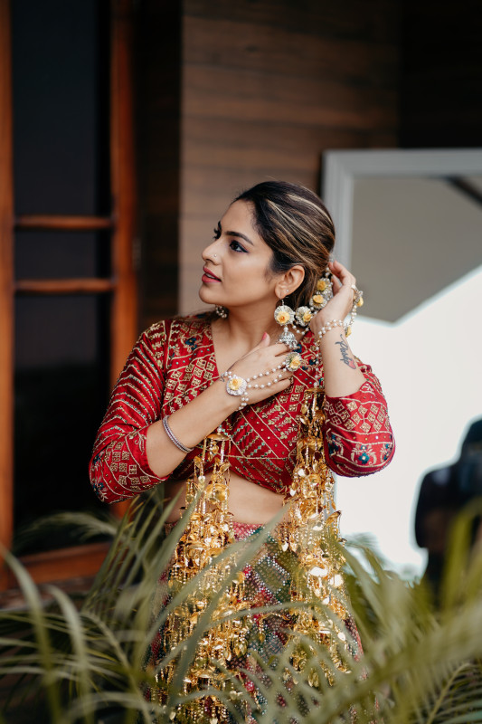 Bride is wearing traditional kaleeras with the touch of ghungroos .