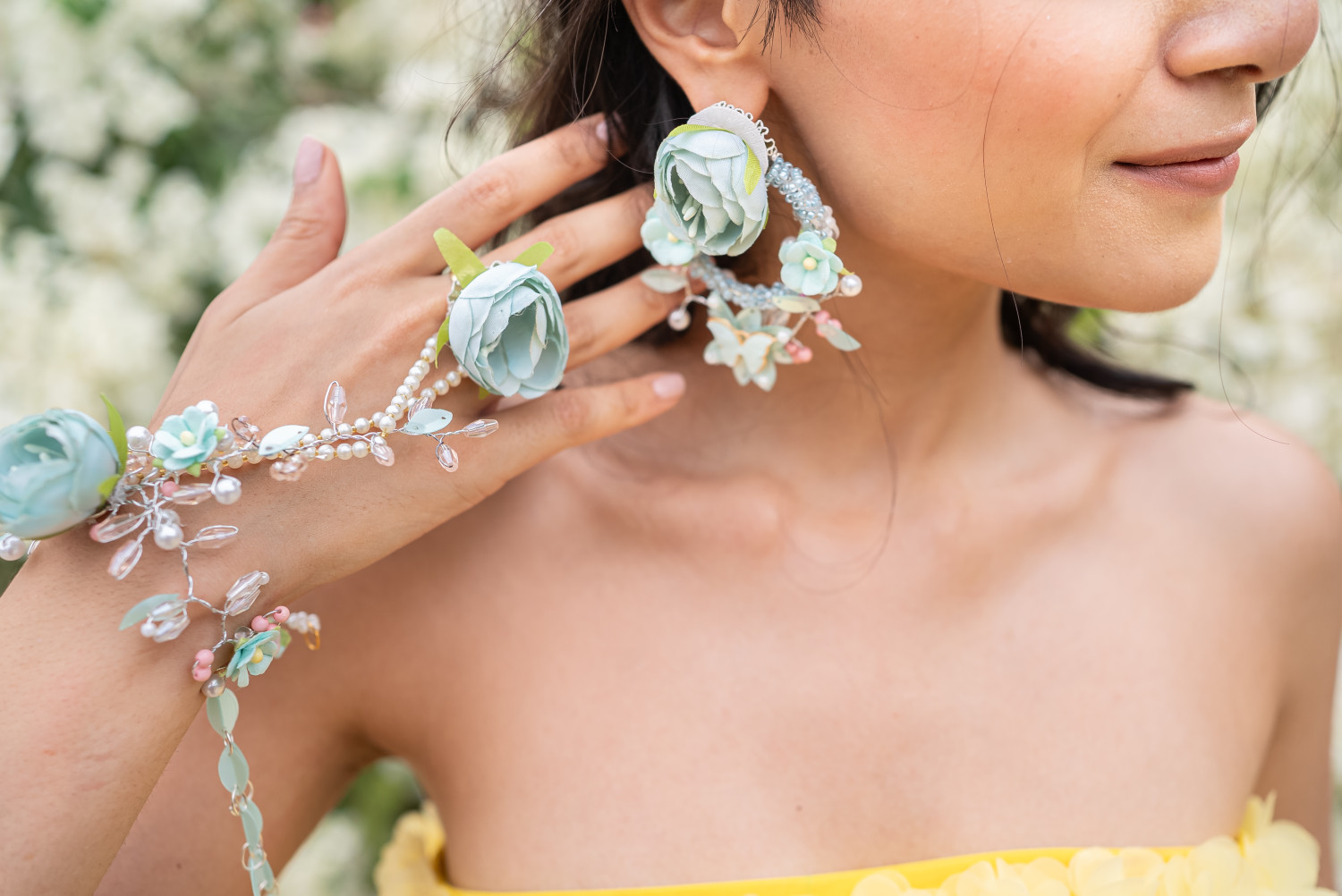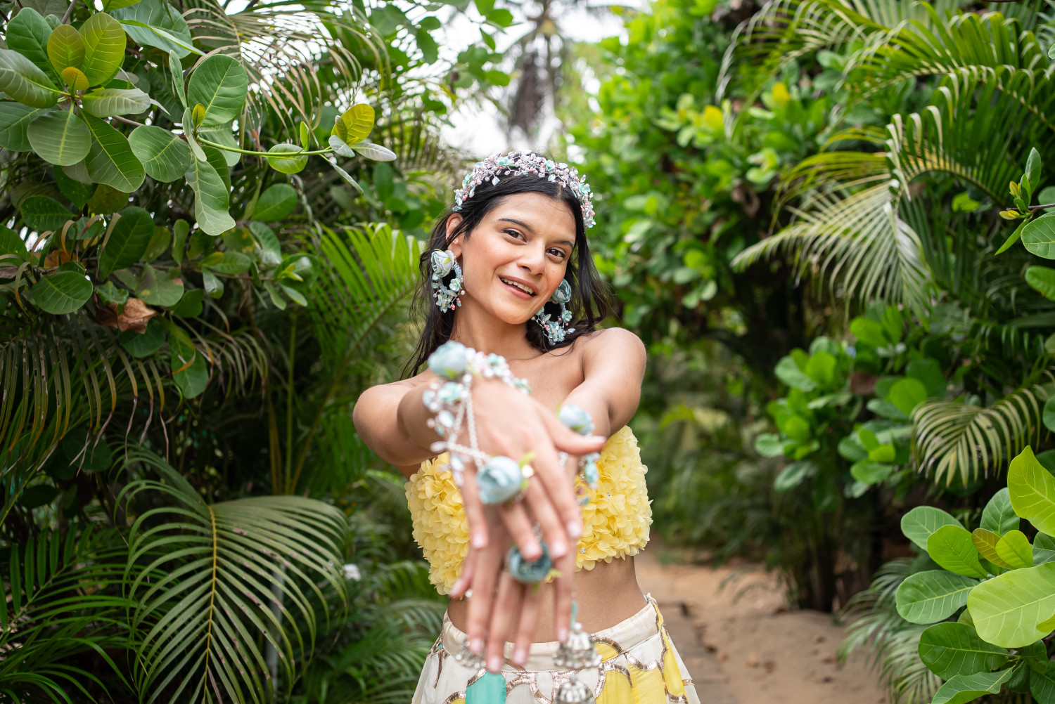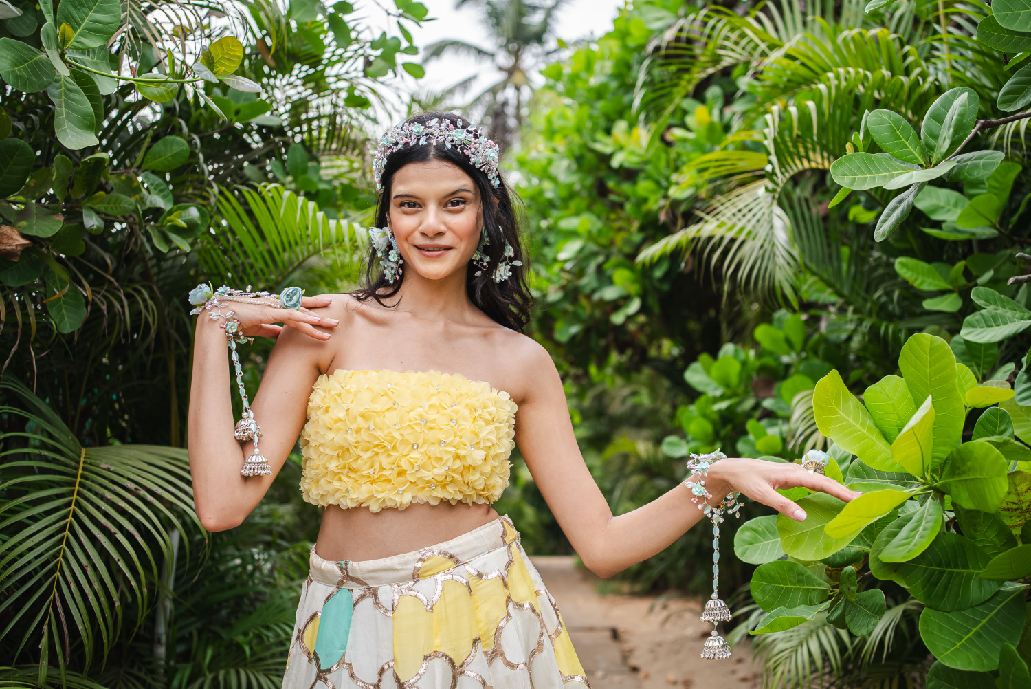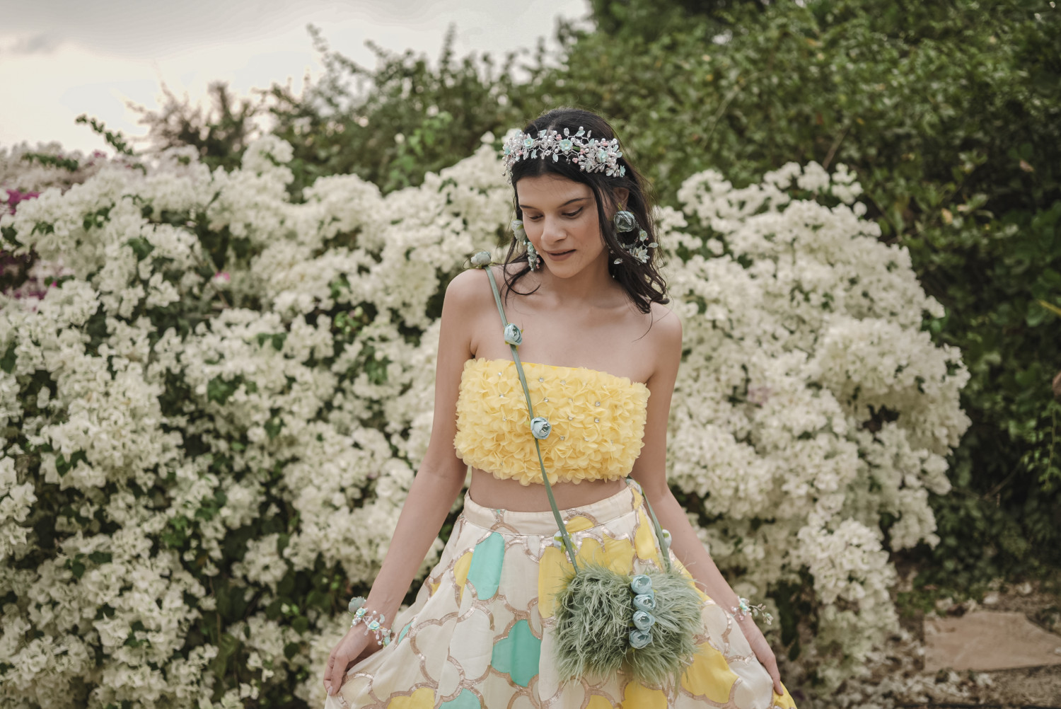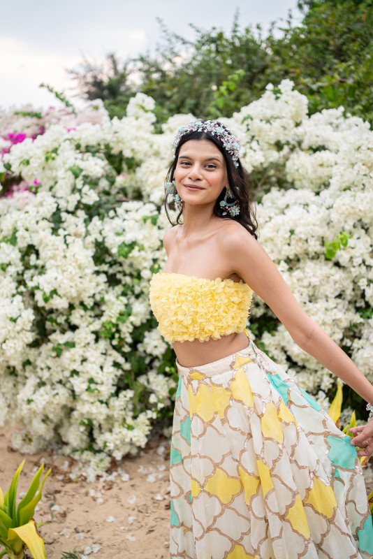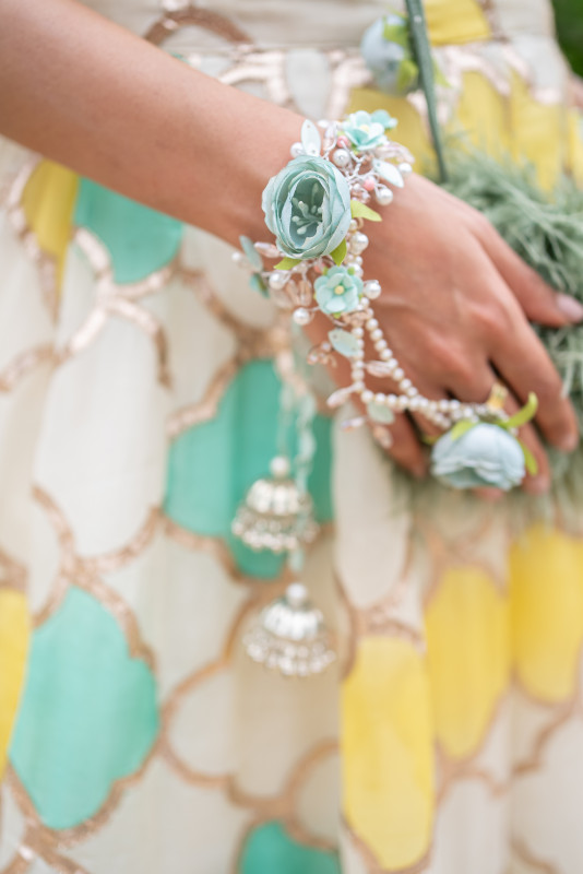Crafted with florals and pearls in dreamy pastels, perfect for every bridal Haldi moment