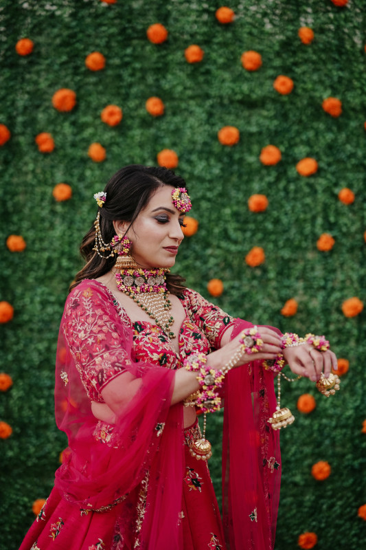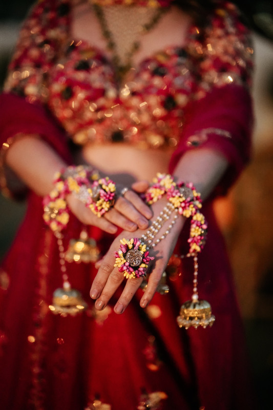 These handcrafted kaleeras are made up of flowers with traditional golden kaleeras for one of the most scintillating and gorgeous look of the bride.